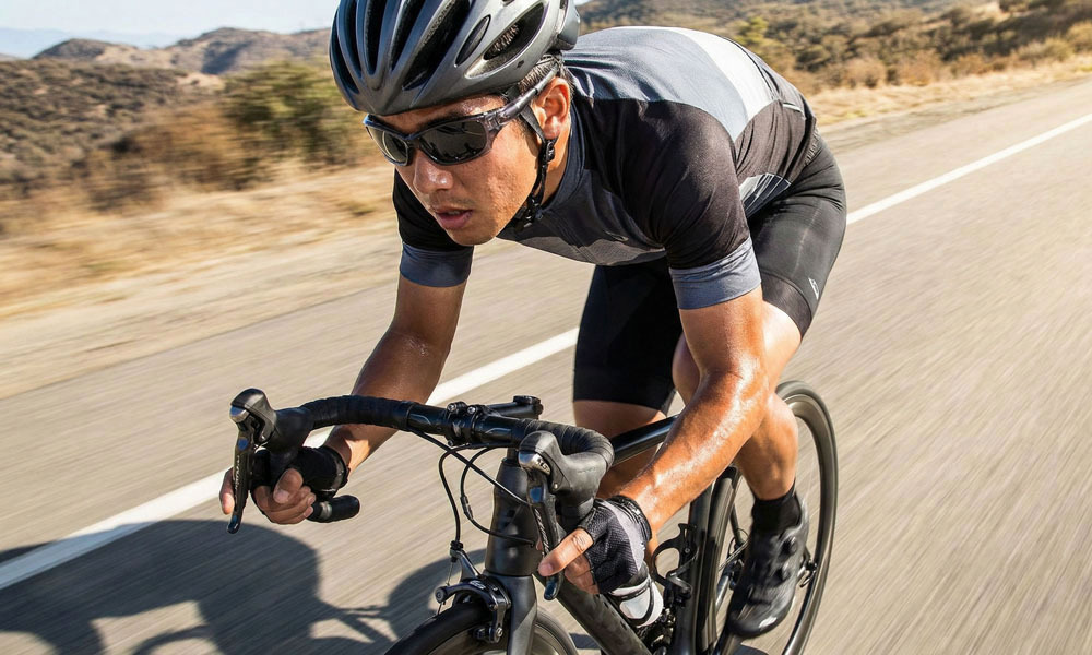 汗をかくほどにグリップ力が増す、高速域の振動でもズレることなく、視界を常に安定。