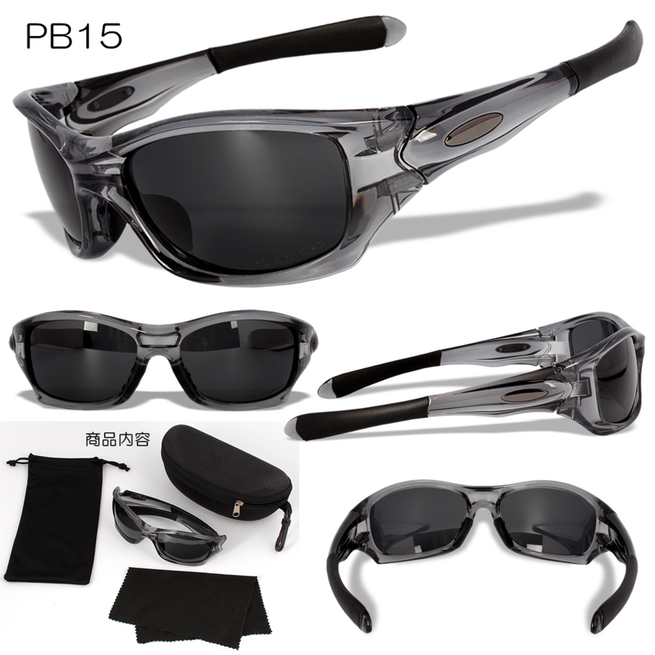 PB15:クリスタルグレー(crystal gray)フレーム+グレー偏光レンズ