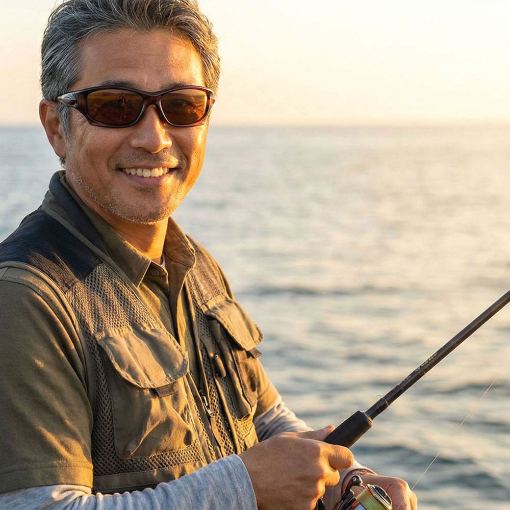 ●耐久性の高いフレームと高解像度偏光レンズ、紫外線完全カット