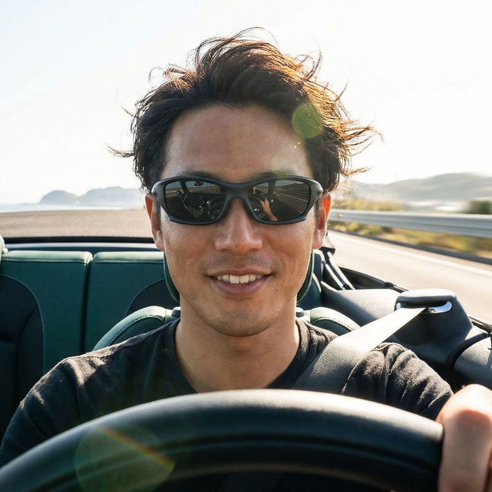 ●偏光レンズ:紫外線(UV)99.9%カット、可視光線透過率18%、偏光度99%、くっきり視界確保~室外活動に最適~