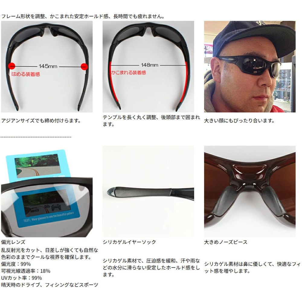 ●最適着用感:アジアンサイズよりフレーム形状を微調整、テンプルを長くまるく、かこまれた安定ホールド感、長時間でも疲れません~