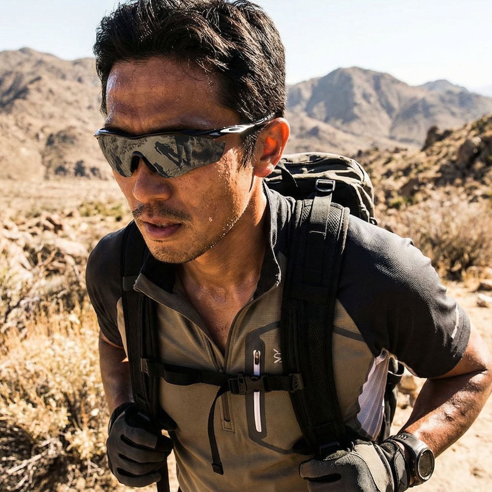 レンズは簡単に交換でき、様々な光条件や環境に対応するために異なるレンズカラーを使用。