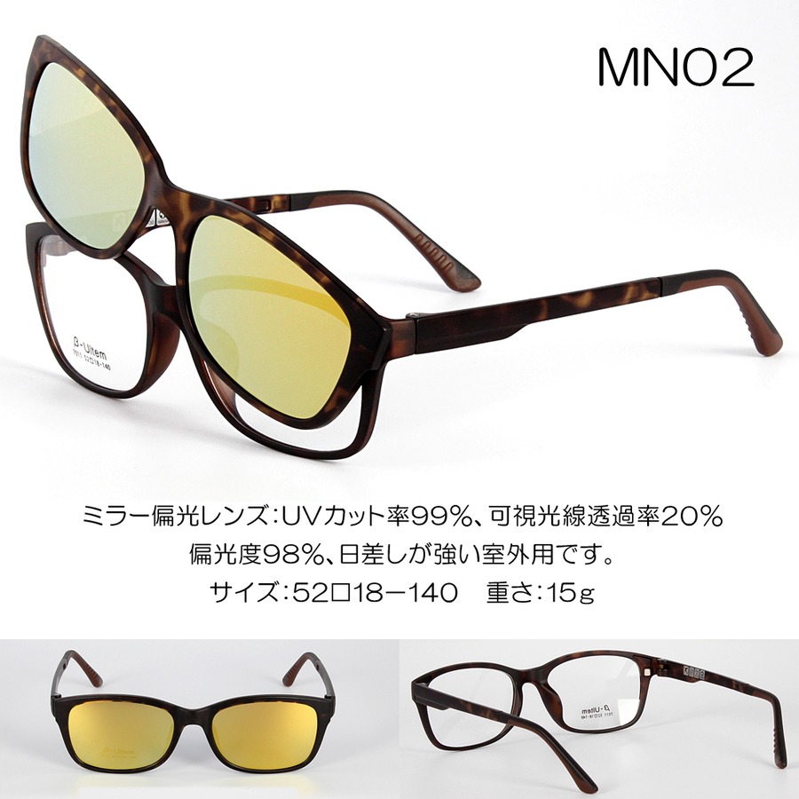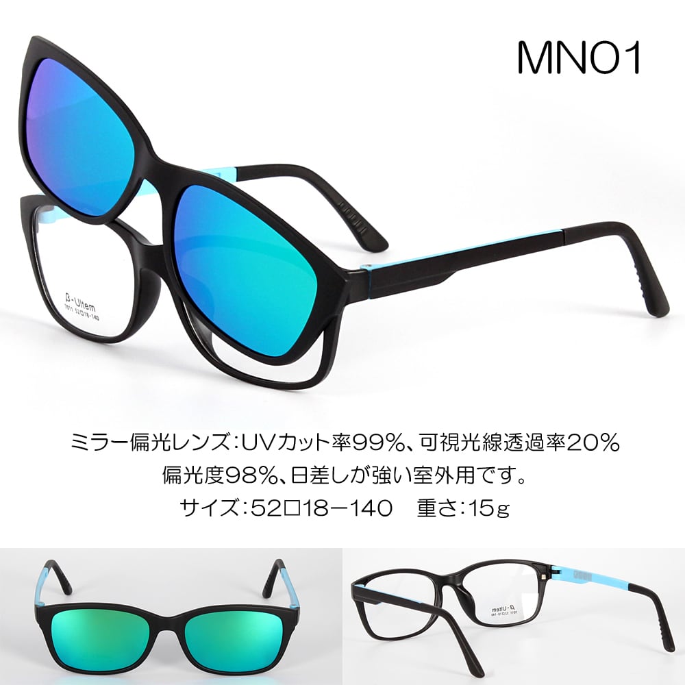 マグネット式 偏光 ミラー サングラス 伊達眼鏡 メガネ MN 送料無料